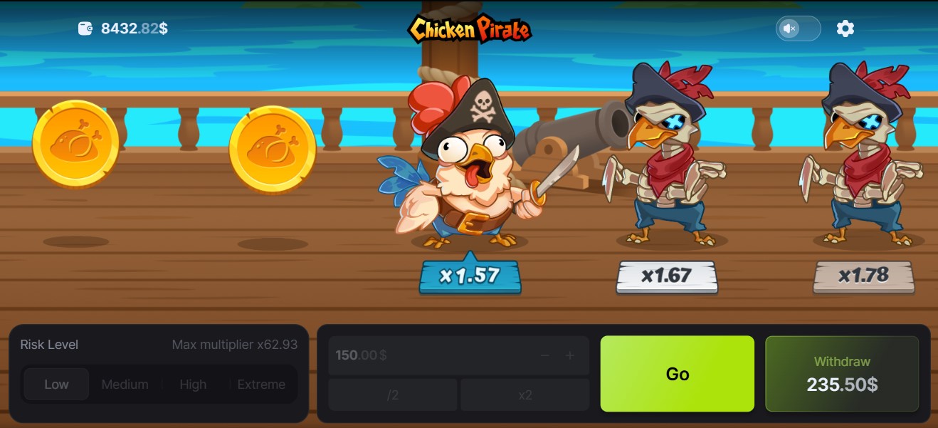The truth is, Chicken Pirate isn’t about greed. It’s about timing and knowing when to settle for a modest win. After losing a few demo rounds (thank god it wasn’t real money yet), I realized that the safest way to build a bankroll is to aim for smaller multipliers — like x1.5 or x2.